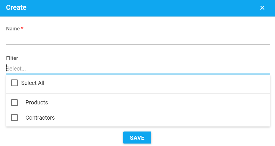 1. When creating a new dashboard, choose the parameter by which you want to filter the reports: products and/or contractors.