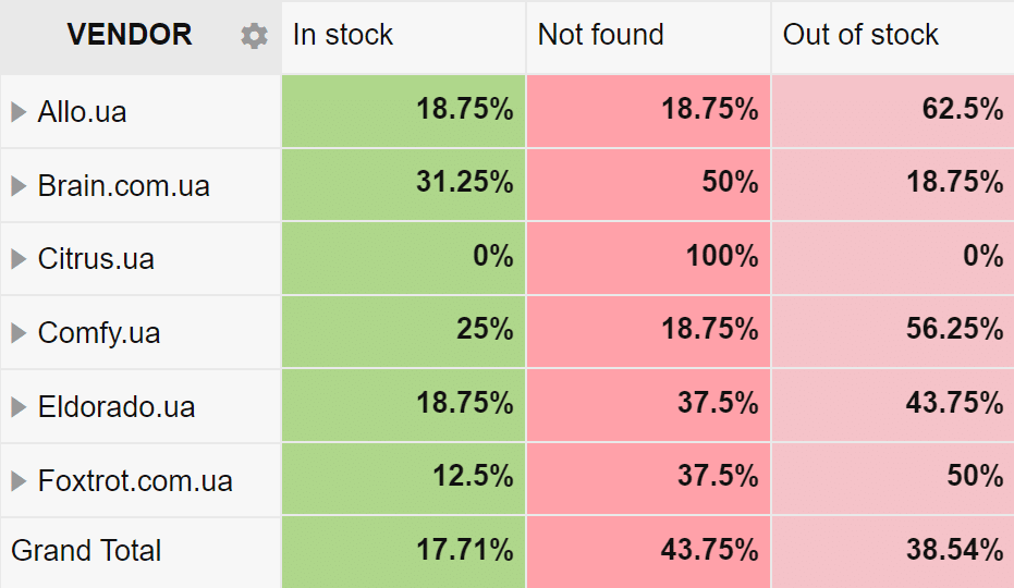 Visual analytics helps Sergiy immediately understand whether all his products are available for purchase throughout the entire partner network. With real-time data, he can quickly decide on the next steps to improve the brand’s portfolio in the marketplace.