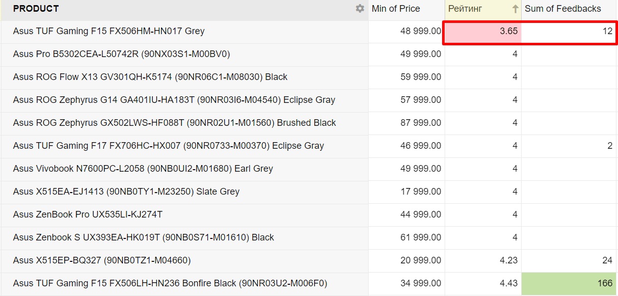 Pricer24 allows Sergiy to quickly identify problem areas (low-rated products) and plan subsequent actions to deal with the negative.