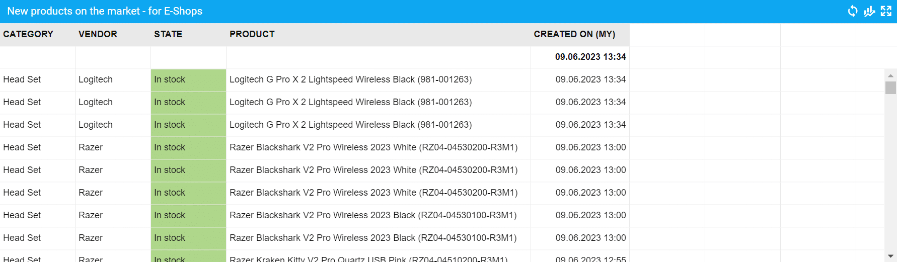 Additionally, Pricer24 collects data not only on a product’s current representation status but also on the date of any status change. Thanks to this, you can see which positions have recently appeared on the market.