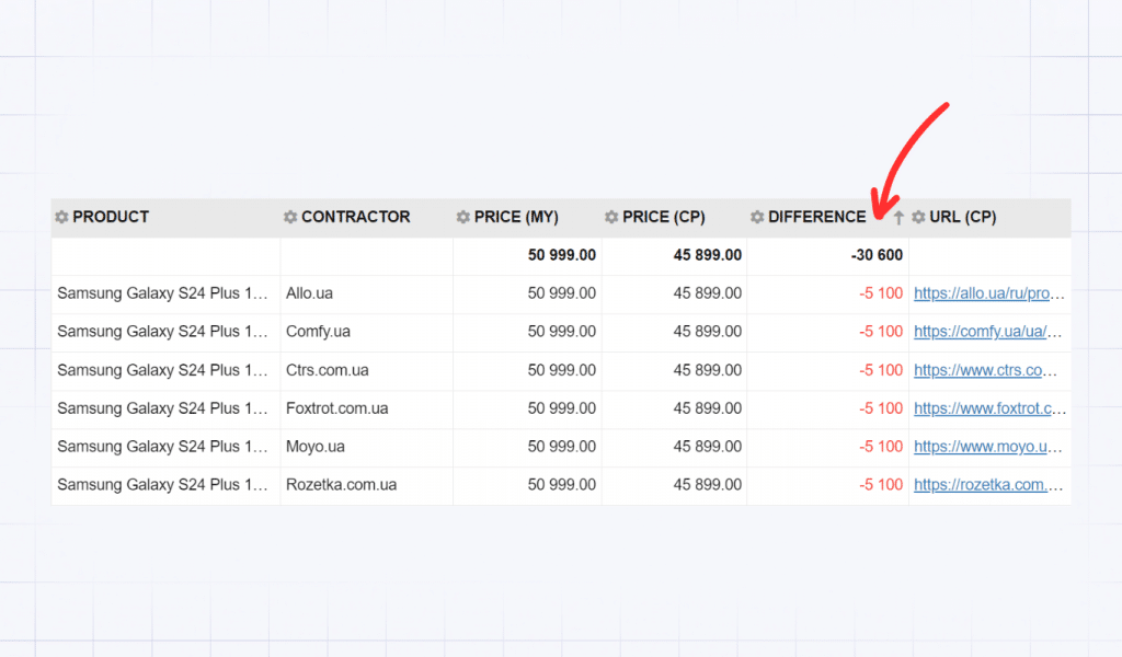 To do this in Pricer24, open the Price Comparison report. The system automatically matches your pricers with competitors’ prices, and with just a few clicks, you can display ready-made analytics on your screen.