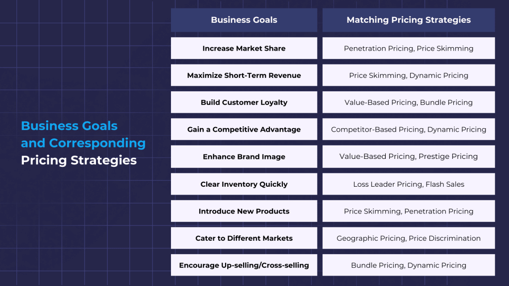 Business goals and corresponding pricing strategies