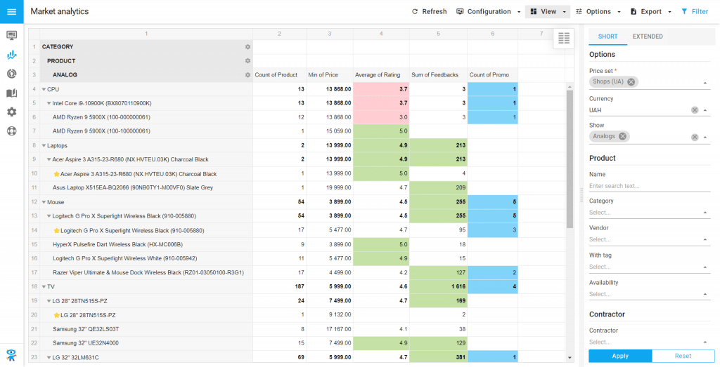 To conduct price comparisons, the category manager should have accurate and up-to-date competitor data. Parsing competitors’ prices using Pricer24 can save you time when collecting this information. Here’s how you will be able to analyze the data you gather: