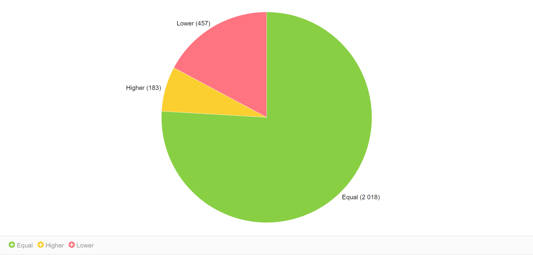 Price Comparison report displaying in a pie chart the number and percentage of market offerings whose prices are lower than yours