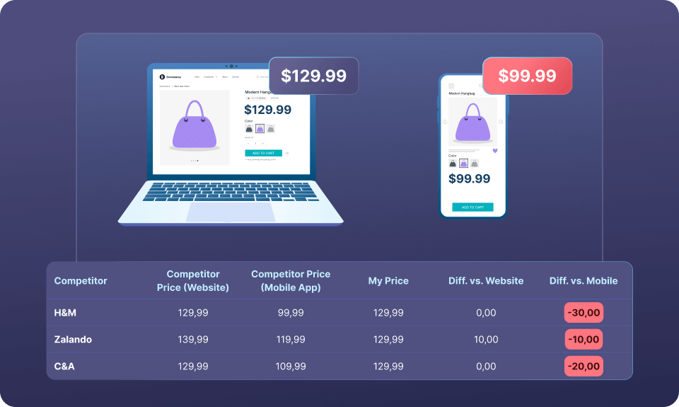 We gather insights from the most complex part of e-commerce — your competitors’ mobile apps. You’ll see how prices differ for key products and categories, and be able to analyze their mobile sales strategies. Pricer24 will be tailored to deliver the exact type of data you need to make informed decisions.