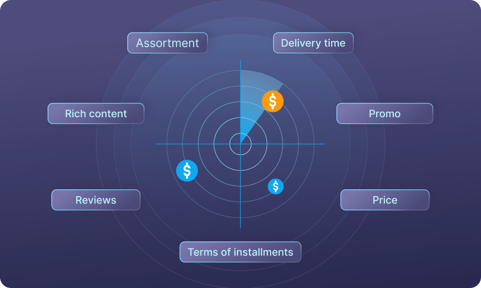 We continuously compare product ranges, delivery options, installment plans, and credit terms — both yours and your competitors’ — across websites and apps. This helps you spot differences that make competitors stronger or weaker. Our data is detailed enough to uncover product groups in high demand but poorly represented by competitors.