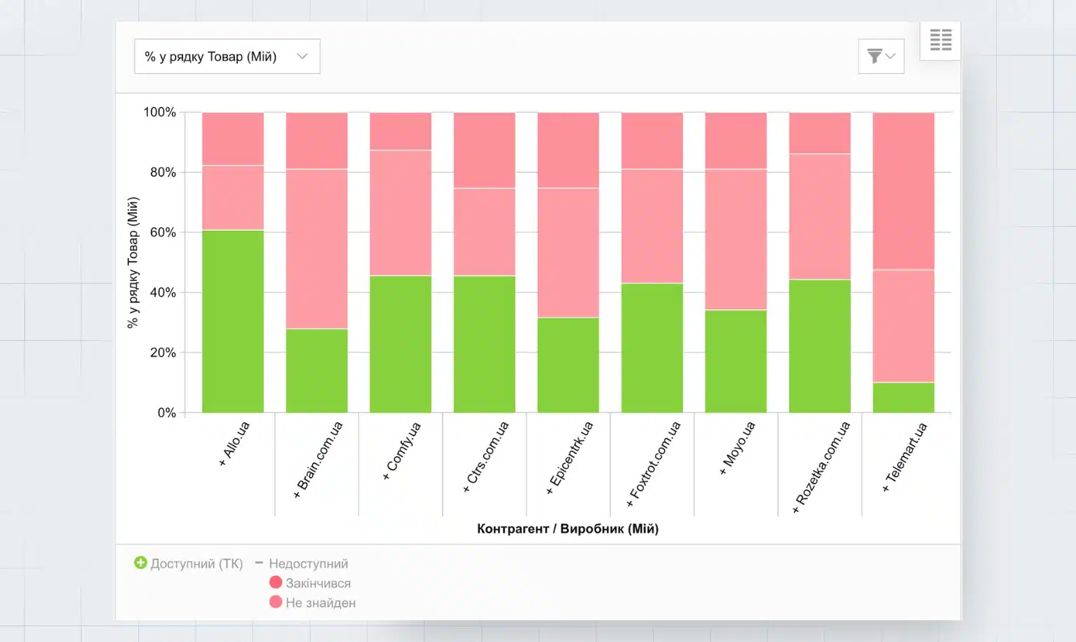 Зеленый цвет — доля доступных товаров.