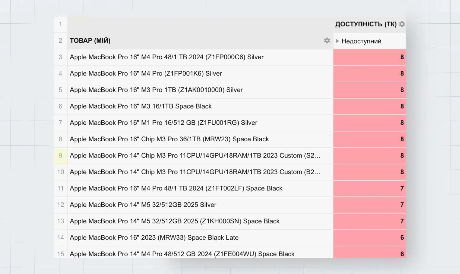 Теперь переходим ко второму уровню анализа — таблицы с распределением по статусам: «Доступны для покупки» и «Закончились».