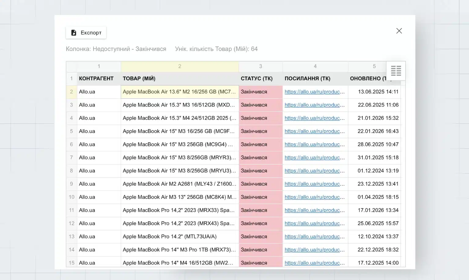 Мария может экспортировать этот список и отправить менеджерам партнеров с просьбой добавить новинки на сайт. Теперь она полностью контролирует процесс.