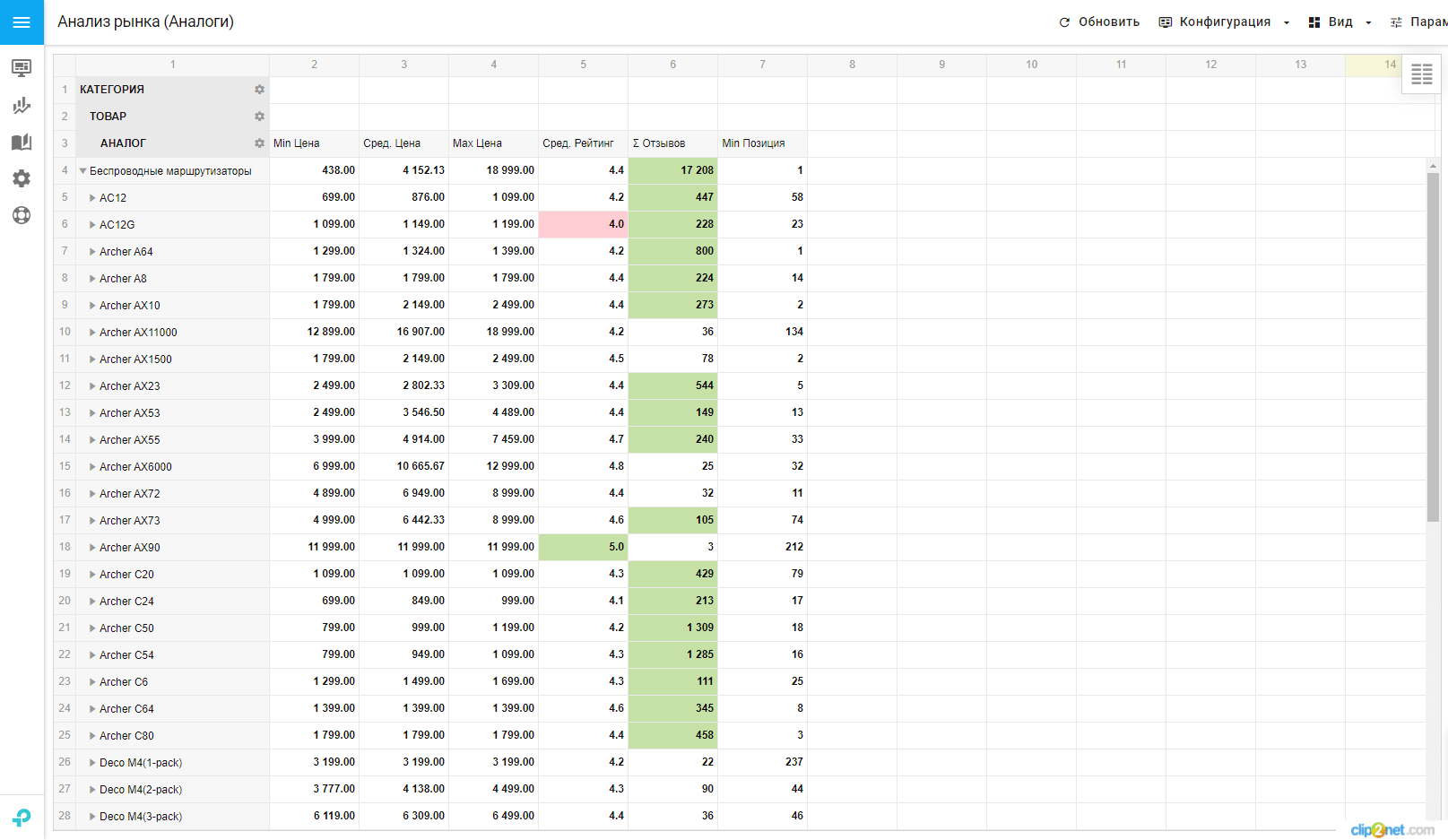 Этот отчет мы используем для анализа аналогов конкурентов и сравнения их со своими позициями.