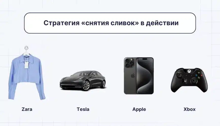 Эти примеры демонстрируют, как ценовая стратегия «снятия сливок» может быть успешной в разных отраслях и для разных типов товаров или услуг.